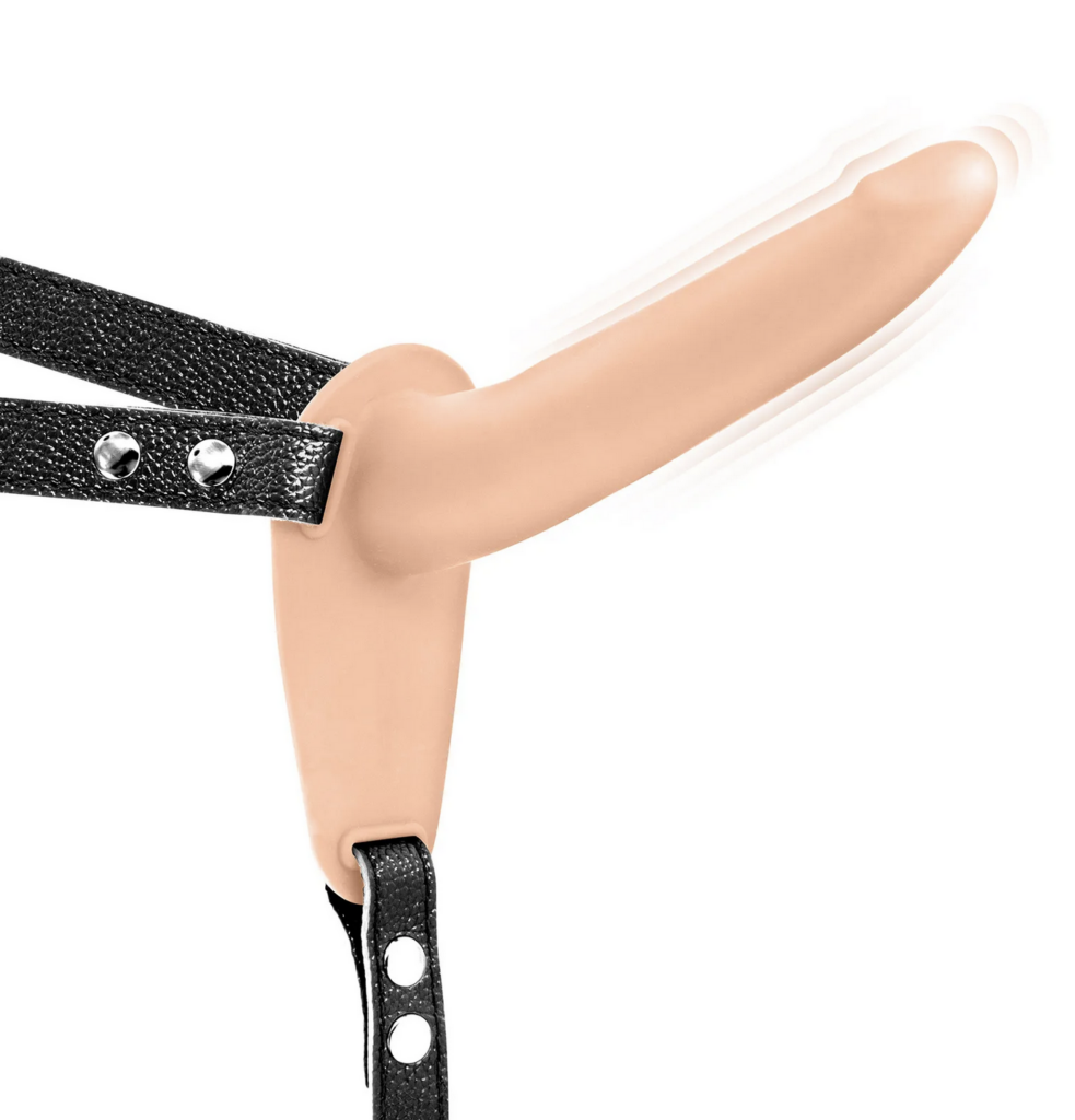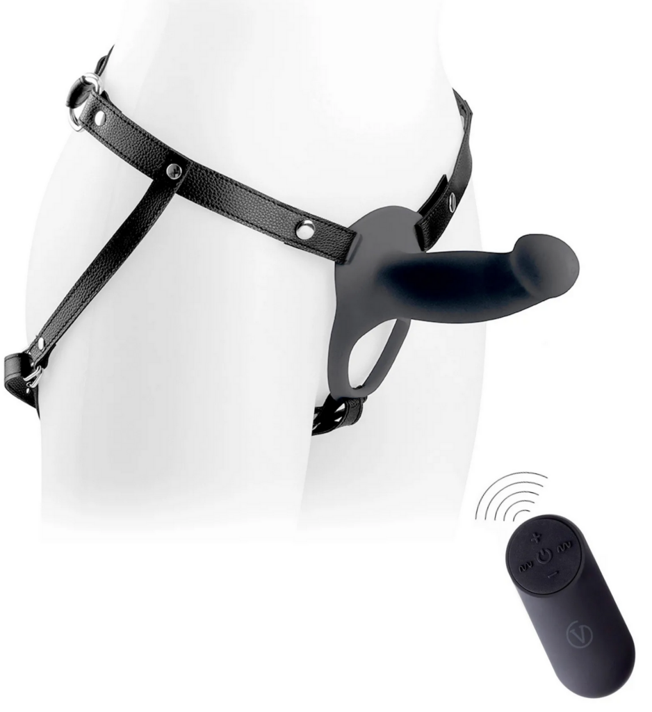 Version avec vibration pour sensations partagées. - Virgite H3, gode ceinture creux et vibrant avec ouverture pour testicules – VIRGITE
